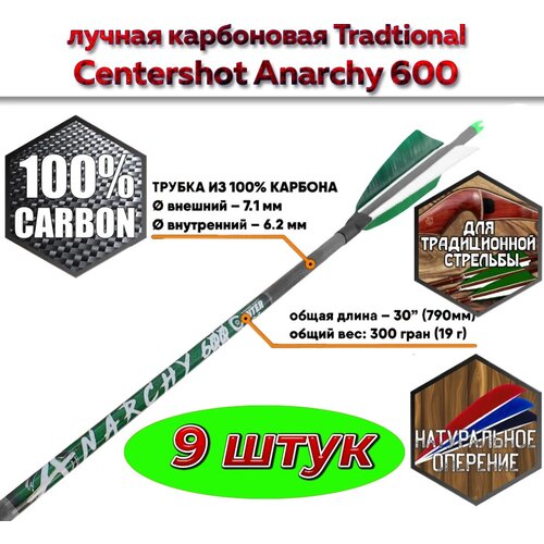 Стрела лучная карбоновая Centershot Anarchy 600 натуральное оперение ( 9 шт. )