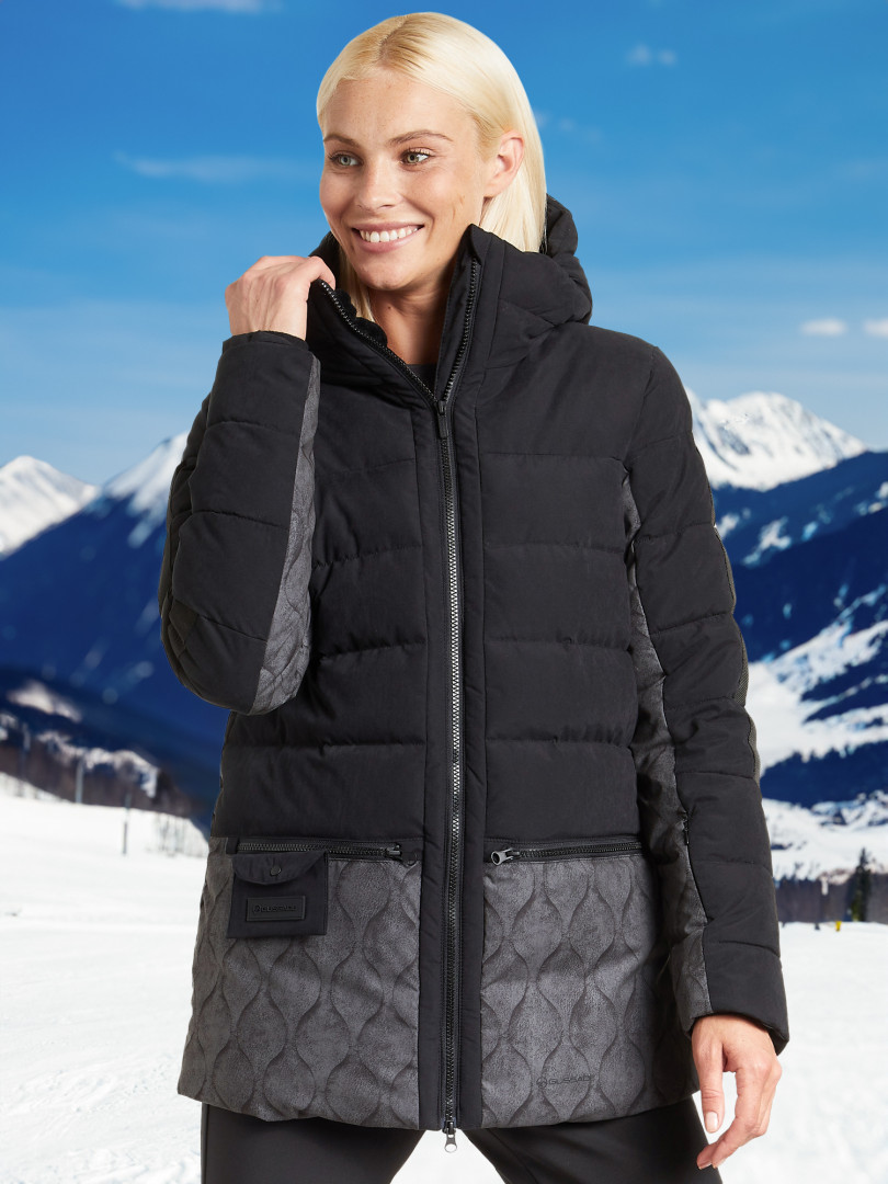 Dry, дополненная водоотталкивающей пропиткой и проклеенными в критических местах швами, защищает от осадков, ветра и грязи и обеспечивает оптимальный микроклимат. Показатели водонепроницаемости и паропроницаемости: 5000 мм / 5000 г/м2/24 ч. Современный синтетический утеплитель Iso