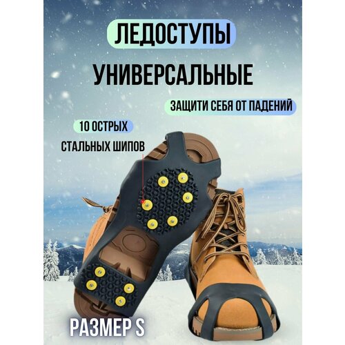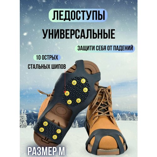 Ледоступы на обувь размер 42 - 46 (1 пара) ледоходы для обуви универсальные 10 металлических шипов, антигололед для прогулок и спорта, для рыбалки