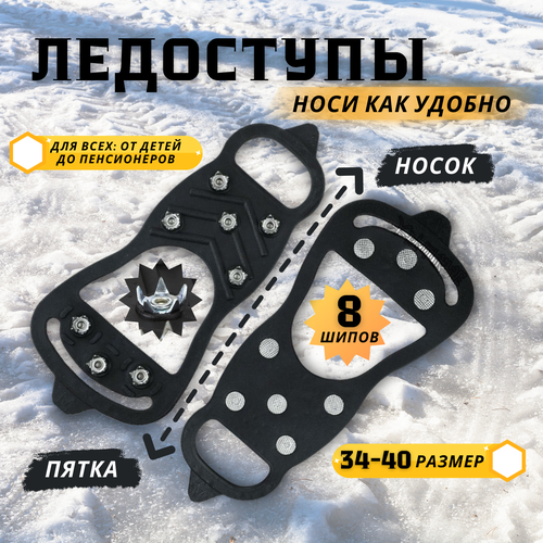 Ледоступы на обувь 8 шипов, ледоходы размер 34-40, накладки шипы для обуви детские, женские, мужские