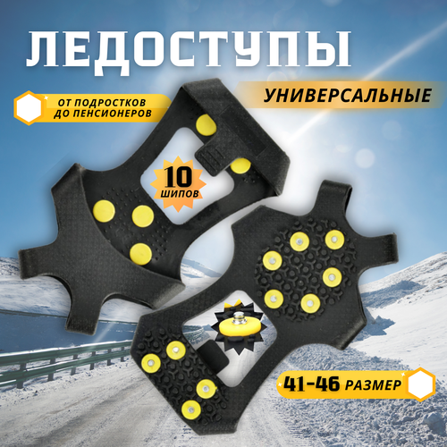 Ледоступы на обувь 10 шипов (6+4) размер 41-46, ледоходы, шипы накладки на обувь противоскользящие для женщин, мужчин, подростков