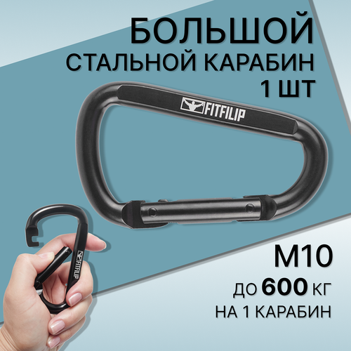 Карабин FITFILIP D-образный, зубчатый замок, сталь, 10х58х130 мм