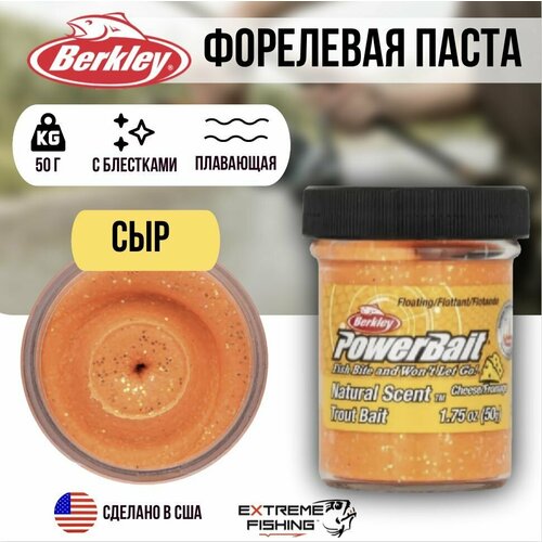 Паста форелевая сырная оранжевая Berkley PowerBait Natural Scent Trout Bait Fluorescent Orange