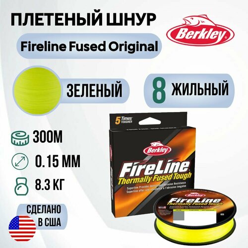 Леска плетеная Berkley Fireline Fused Original 300м Яркозеленая 0,15мм 8,3кг Fl Green
