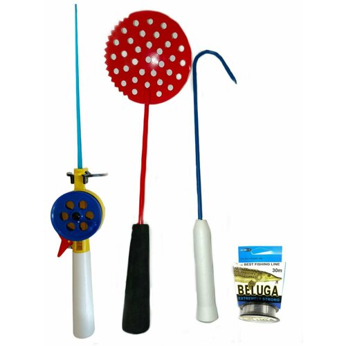 Набор для зимней рыбалки: черпак, багор, удочка, леска белуга 0,08 мм