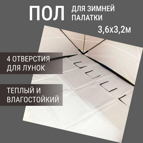 Пол для зимней палатки 3,6х3,2м, 4 отверстия для лунок / для рыбалки, для кемпинга