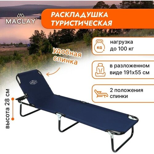 Раскладушка туристическая, с регулируемой спинкой, р. 191 х 55 х 28 см, до 100 кг