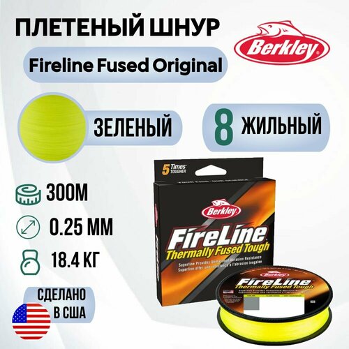 Леска плетеная Berkley Fireline Fused Original 300м Яркозеленая 0,25мм 18,4кг Fl Green