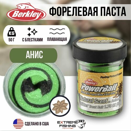 Паста форелевая анис зелено черная Berkley PowerBait Natural Glitter Spring Green/Black