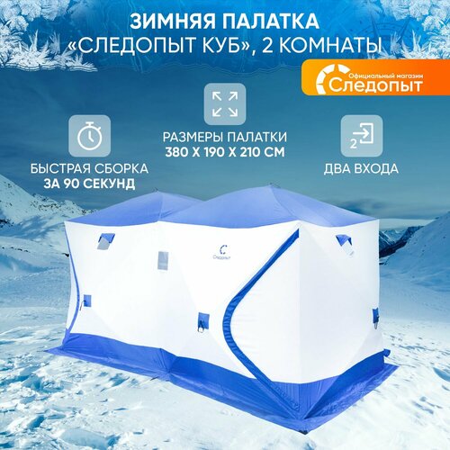 Палатка для рыбалки двухместная СЛЕДОПЫТ Куб однослойная зимняя 2 240D 1,5х1,5м, белый/синий