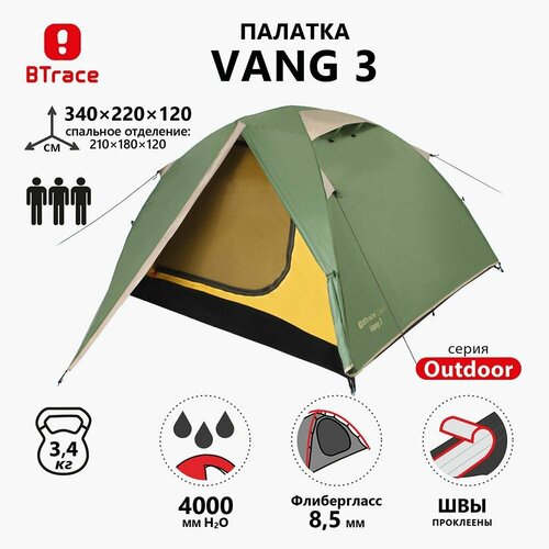 Палатка трекинговая трехместная Btrace Scout (2-местная +), зеленый/бежевый