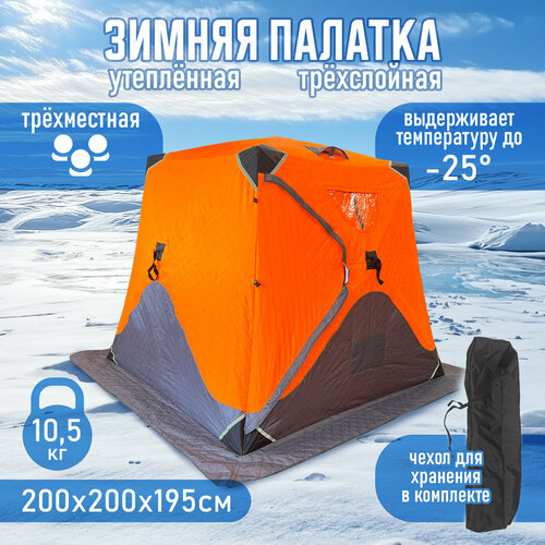 Палатка зимняя для рыбалки утепленная трехслойная куб