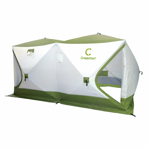 Палатка зимняя куб следопыт "Premium" 4,2х2,1м,2-х комнатная, S по полу 8,8кв. м, 3 слоя, цв. олив/бел