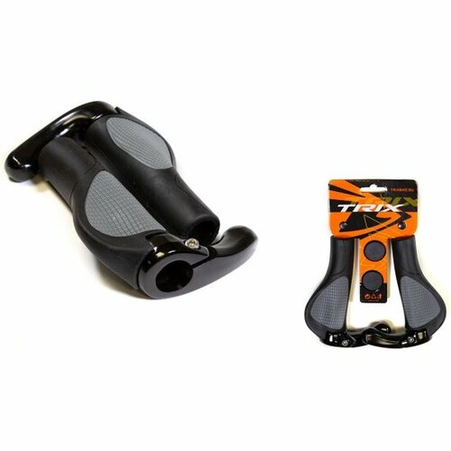 Грипсы TRIX , резиновые, 140мм, 2-х компонентные, с заглушками руля, серо-черные