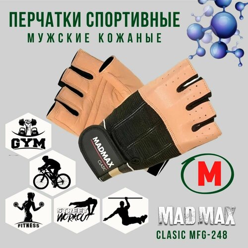 Перчатки мужские для фитнеса кожаные MadMax Clasic MFG-248 Brown-Black, Размер M - Для тяжелой атлетики, воркаута, кроссфита, велоспорта, из натуральной кожи (арт.2210)