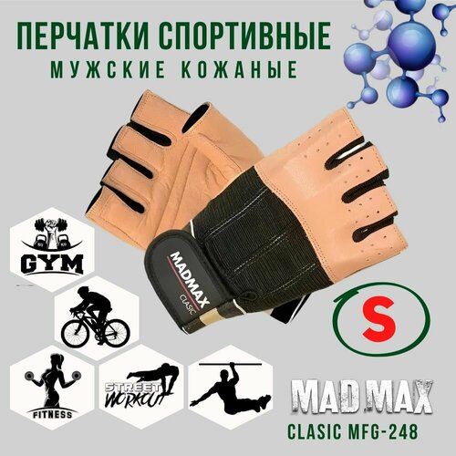 Перчатки мужские для фитнеса кожаные MadMax Clasic MFG-248 Brown-Black, Размер S - Для тяжелой атлетики, воркаута, кроссфита, велоспорта, из натуральной кожи (арт.2203)