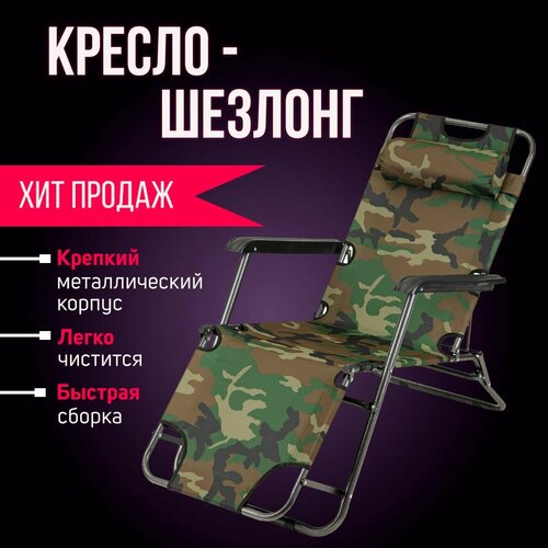 Шезлонг пляжный/для дачи складной камуфляж, 153х60х80 лежак