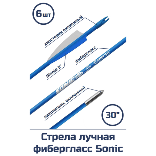 Стрела лучная фибергласс Sonic (30", синяя, 6 шт)