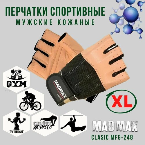 Перчатки мужские для фитнеса кожаные MadMax Clasic MFG-248 Brown-Black, Размер XL - Для тяжелой атлетики, воркаута, кроссфита, велоспорта, из натуральной кожи (арт.2234)