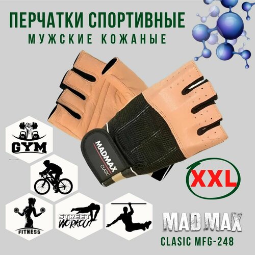 Перчатки мужские для фитнеса кожаные MadMax Clasic MFG-248 Brown-Black, Размер XXL - Для тяжелой атлетики, воркаута, кроссфита, велоспорта, из натуральной кожи (арт.2241)