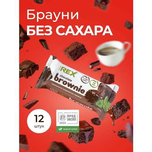 Протеиновые пирожные ProteinRex Брауни Шоколад с коллагеном 12 шт х 50 г, без сахара, батончики Brownie, десерты, ПП сладости для похудения, 190 ккал