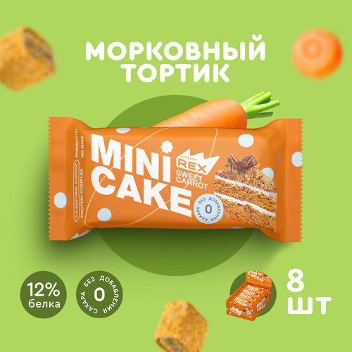 Протеиновое пирожное ProteinRex Тортик Морковный 8 шт десерт без сахара, низкокалорийное печенье, батончики, ПП сладости 160 ккал