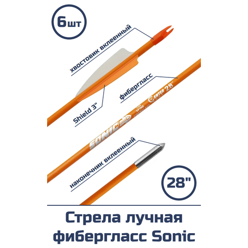 Стрела лучная фибергласс Sonic (28", оранжевая, 6 шт)