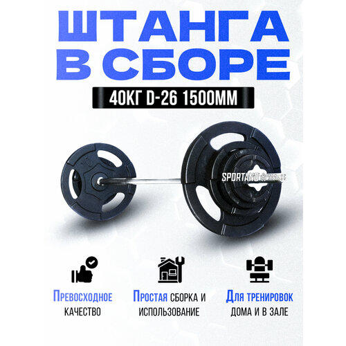 Штанга в сборе 40кг d-26 1500мм Euro-Classic