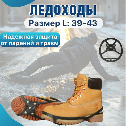 Ледоступы на обувь с шипами. Ледоходы универсальные для мужчин и женщин. Противоскользящие насадки антилед Круглые L
