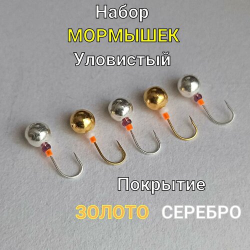 Мормышки для зимней и летней рыбалки 5 штук форма шар золото, серебро 4.7 грамм