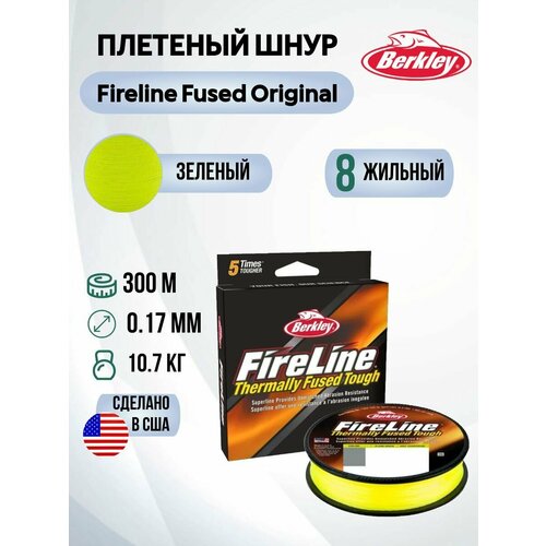 Леска плетеная Berkley Fireline Fused Original 300м Яркозеленая 0,17мм 10,7кг Flame Green