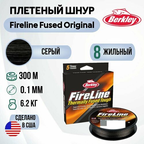 Леска плетеная Berkley Fireline Fused Original 300м Темносерая 0,10мм 6,2кг Smoke