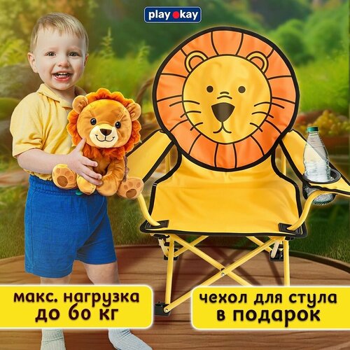 Стул туристический детский PlayOkay складной, максимальная нагрузка до 60 кг, с чехлом, оранжевый