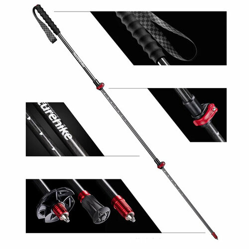 Палка треккинговая Naturehike 3-Node Carbon Fiber Telescopic Trekking Poles 1Pcs Red