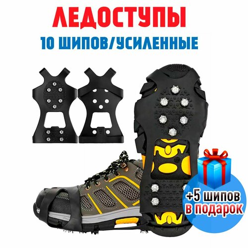 Ледоходы ледоступы для обуви шипы коронки с универсальным размером 42-46 XL 10 шипов + 5 шипов в подарок