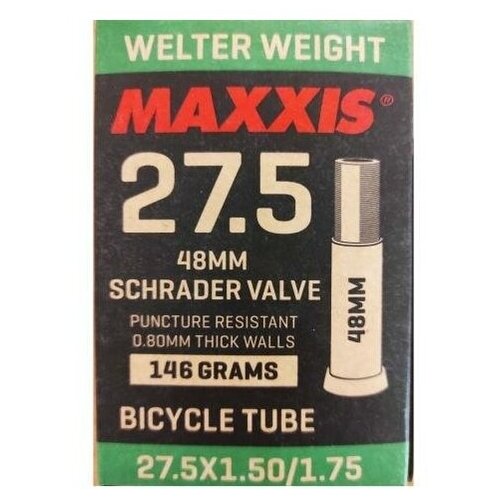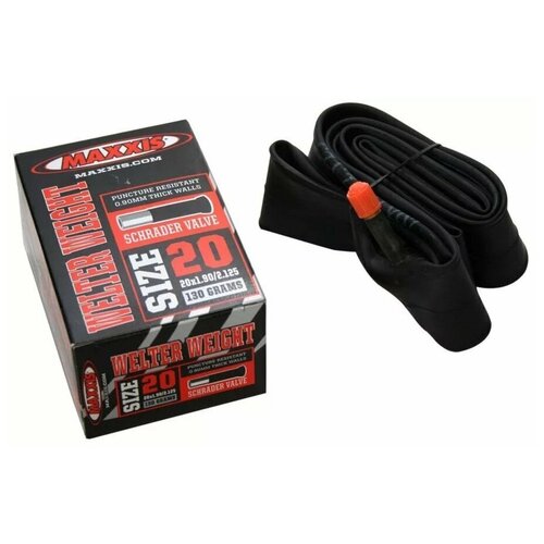черныйВелокамера Maxxis Welter Weight предназначены для агрессивных гонщиков, для которых очень важна долговечность камеры. Эти камеры среднего веса предназначены для всех дисциплин езды. Особенности: Особенности:Материал изготовления - бутил-каучуковая резина. Снабжена автомобильным ниппелем типа Schredar.