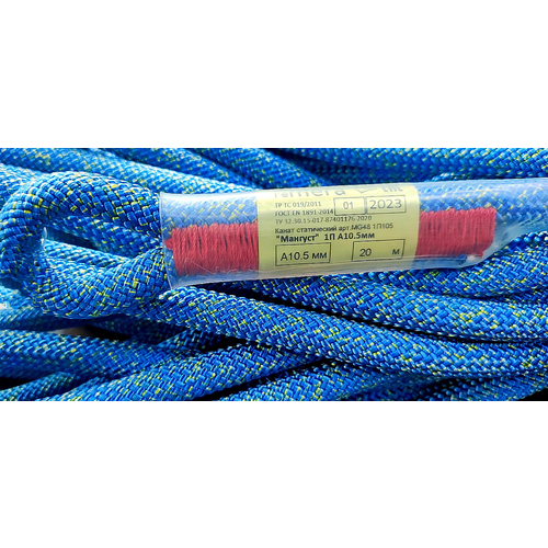 Веревка страховочно-спасательная статика Мангуст П1 10.5мм, нагр. 2700 кгс, 20м (сине/желтая) с прошивкой