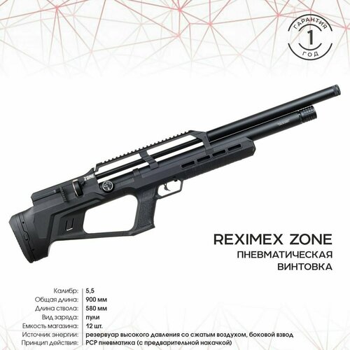 Винтовка пневматическая REXIMEX ZONE, cal. 5,5 mm, 3 Дж (РСР, пластик)
