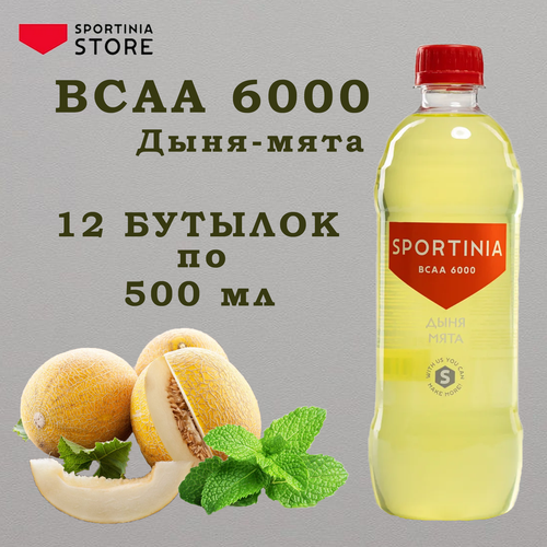 Вода БЦАА Напиток с аминокислотами Спортивное питание Sportinia BCAA 6000 Дыня-Мята, 12 шт. x 500 мл.