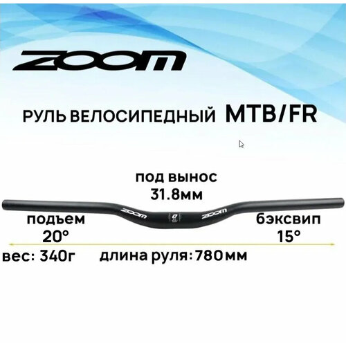 Руль для велосипеда ZOOM MTB-AL-322 31.8х20х780 мм, изгиб 15, подъем 20 градусов