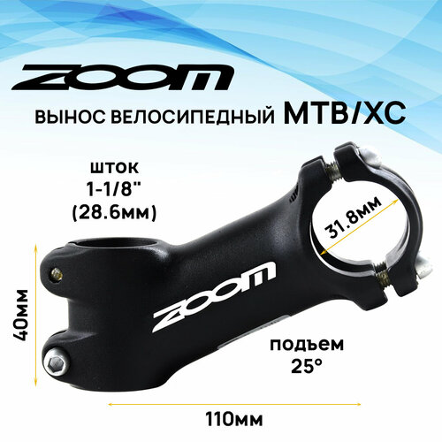 Вынос руля внешний ZOOM TDS-599A-8FOV, 1-1/8" под руль 31,8мм, угол 25 градусов, длина E-110мм, 4 болта