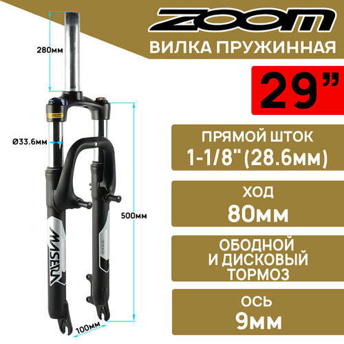 Амортизационная вилка ZOOM Masera на 29" 389 шток 1.1/8", шток 280мм, Lockout, Disc/V-Brake, ход 80мм