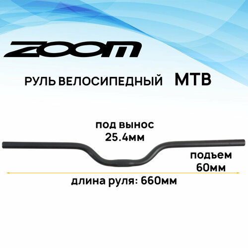 Руль для велосипеда ZOOM MTB-AL-169 25.4х660 мм, подъем 60мм, алюминиевый, матовый