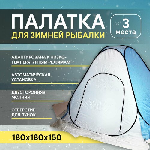 Зимняя палатка для рыбалки 1,8х1,8x1,5, автомат, однослойная, дно расстёгивается, белый/синий белый, серый, синий, белый
