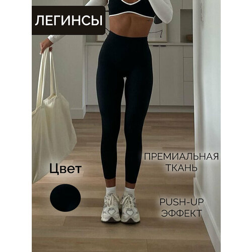 Легинсы гладкие, базовые, премиум ткань, размер M, черные ivi home
