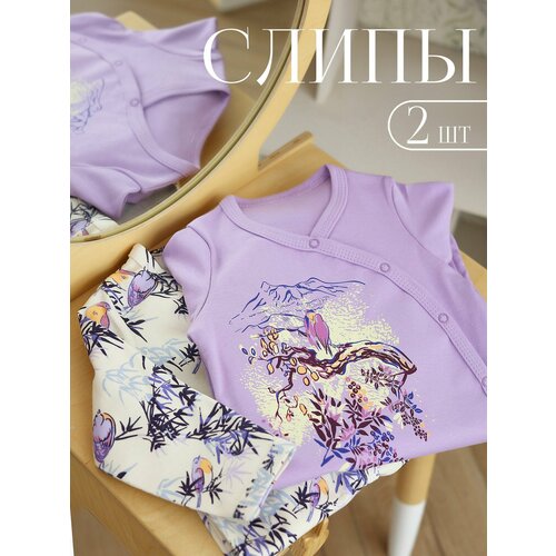 Комбинезон BABYGLORY Райский сад, закрытая стопа, комплект из 2 шт., размер 24-74, светло-сиреневый
