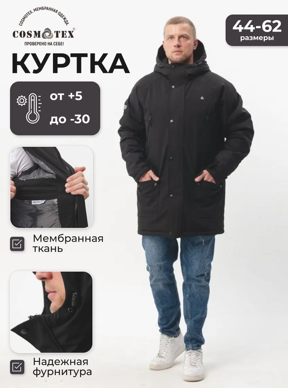 Куртка мужская CosmoTex Норвегия Зима черная 120-124/182-188