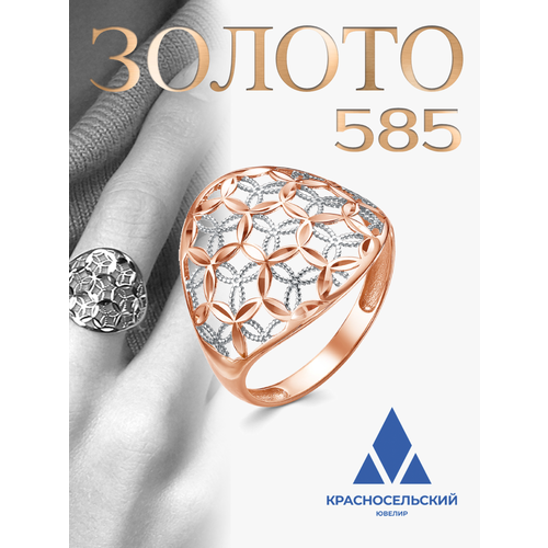 Перстень Красносельский ювелир, красное золото, 585 проба, размер 20, ширина 18 мм