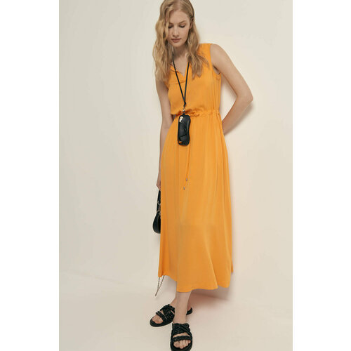 Сарафан FINN FLARE макси с поясом на кулиске, размер L(170-96-102), ярко-оранжевый