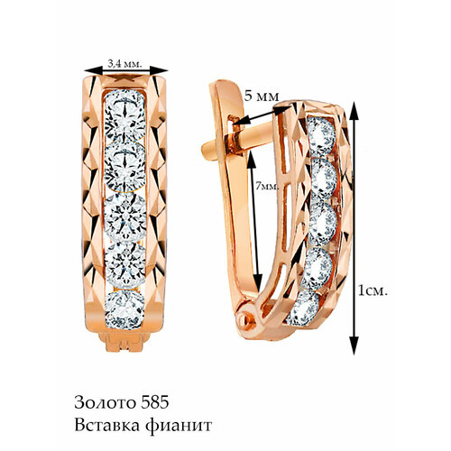 Серьги Юверос, красное золото, 585 проба, фианит, размер 3.4 мм, длина 1 см, , красный